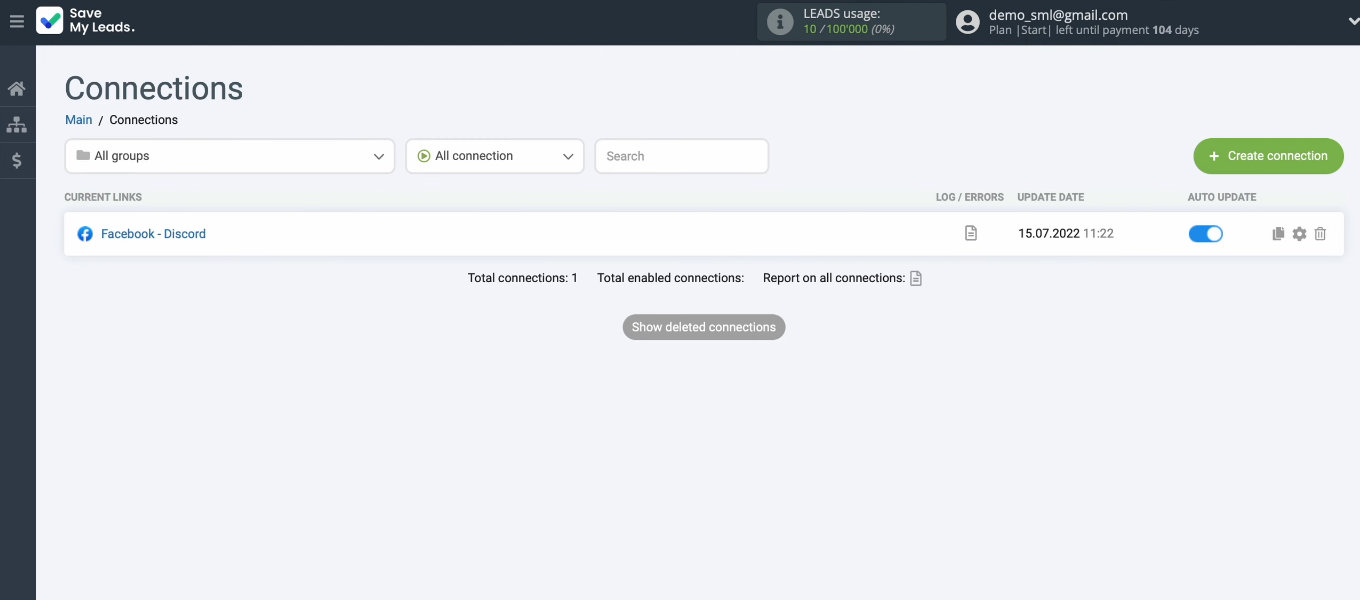 In the main window of the SaveMyLeads workspace, click the “Create connection” button.