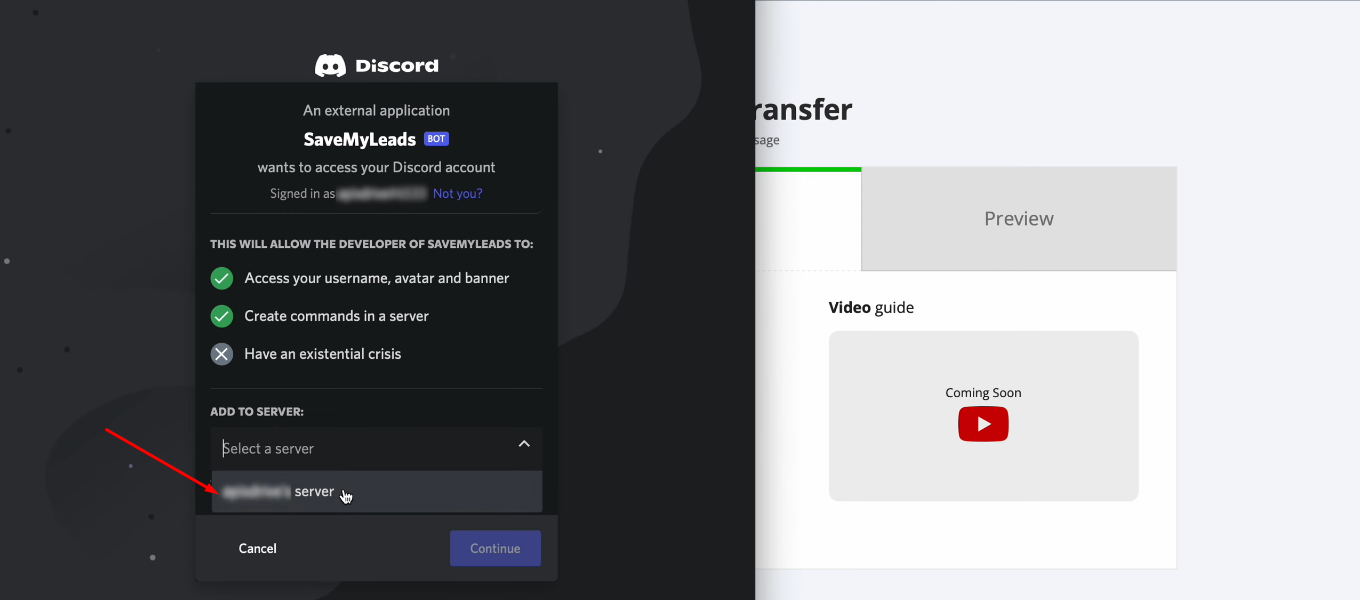 Grant permission to the SML system to work with the selected Discord server. Check all the access checkboxes and click "Authorise".