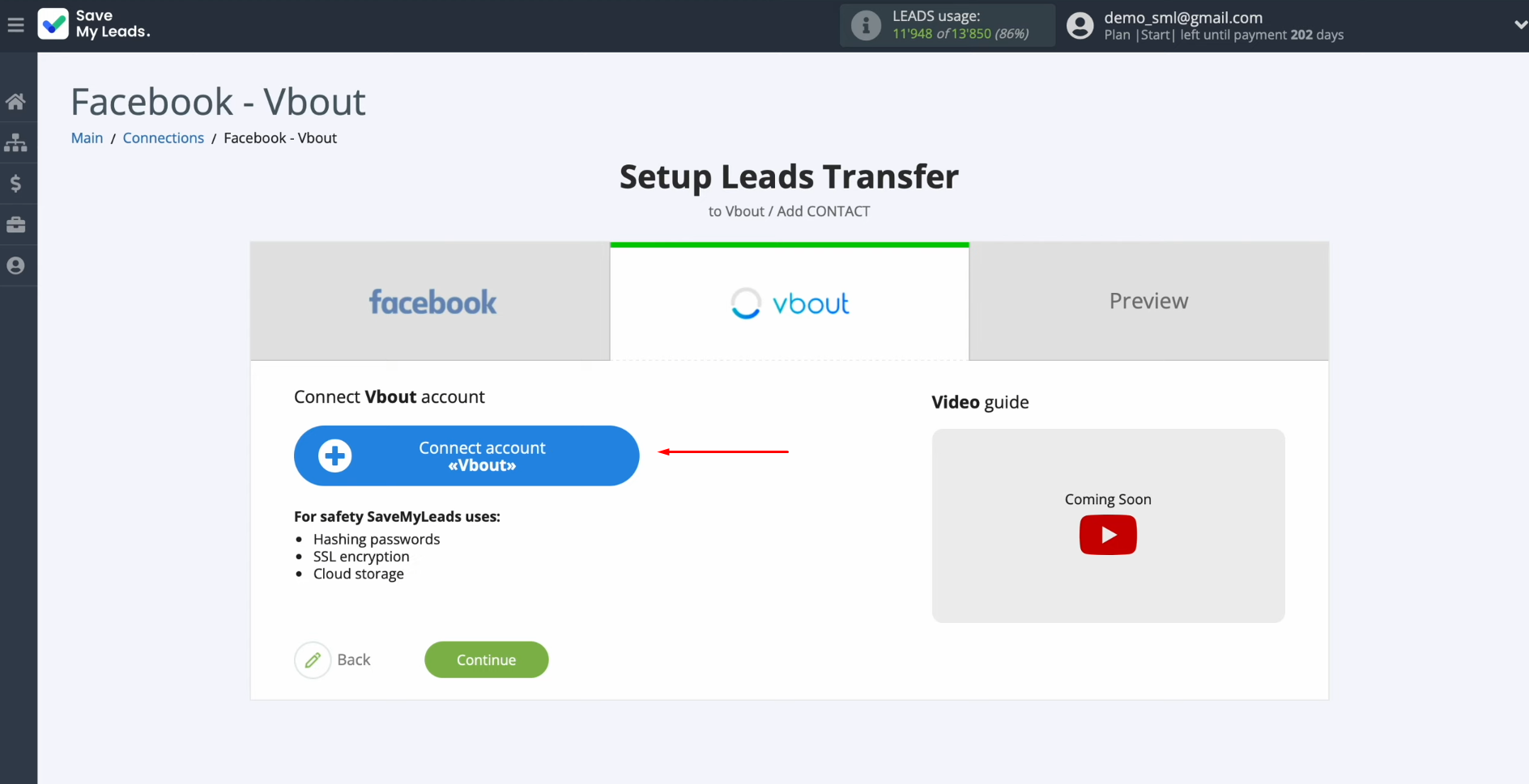 To set up Vbout integration with Facebook, you need to connect your Vbout account to SaveMyLeads. To do this, click on the blue button.