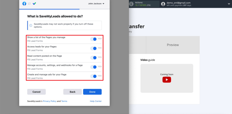 We grant SaveMyLeads permissions for all the listed actions. This is necessary in order for the service to unload leads from Facebook forms.