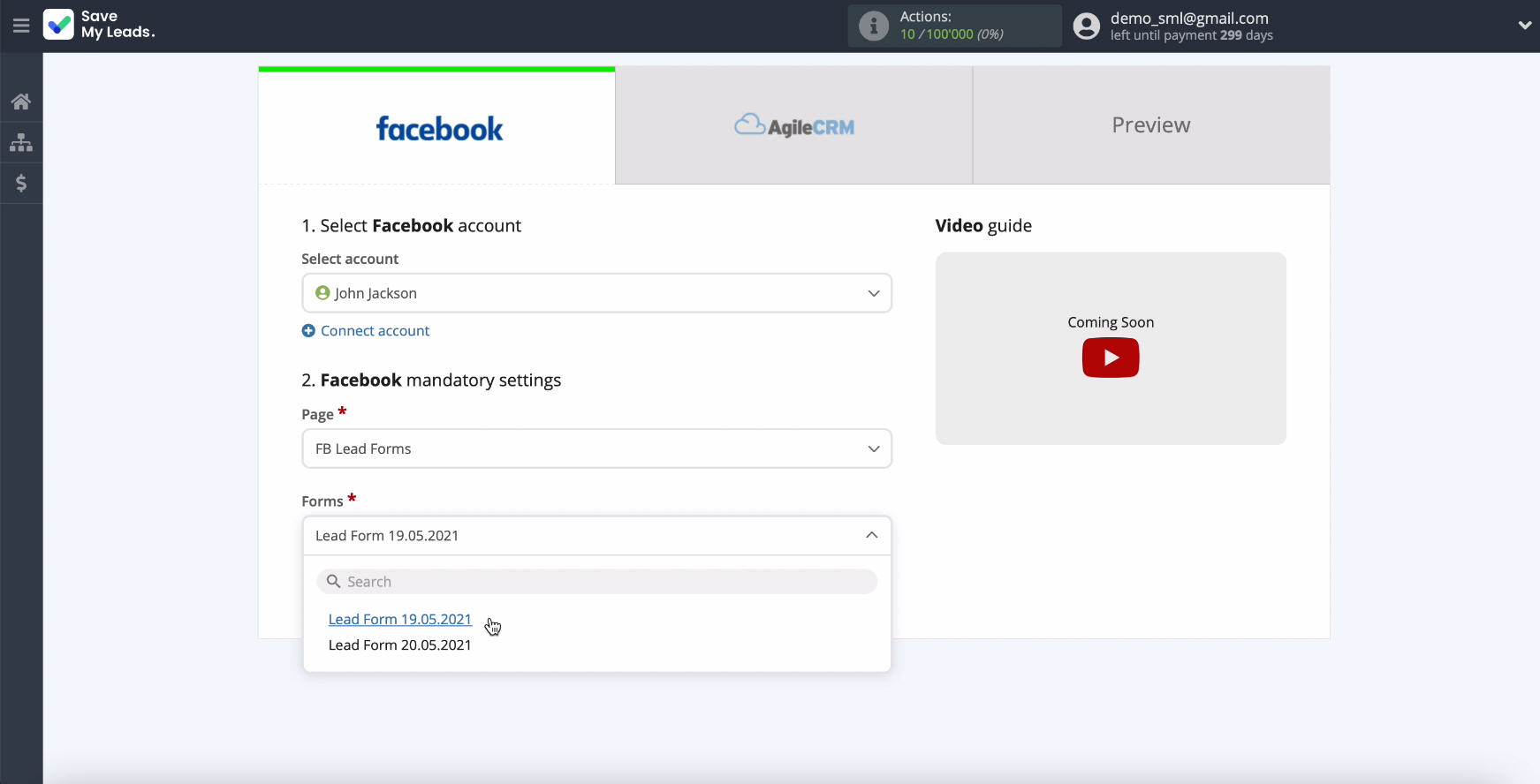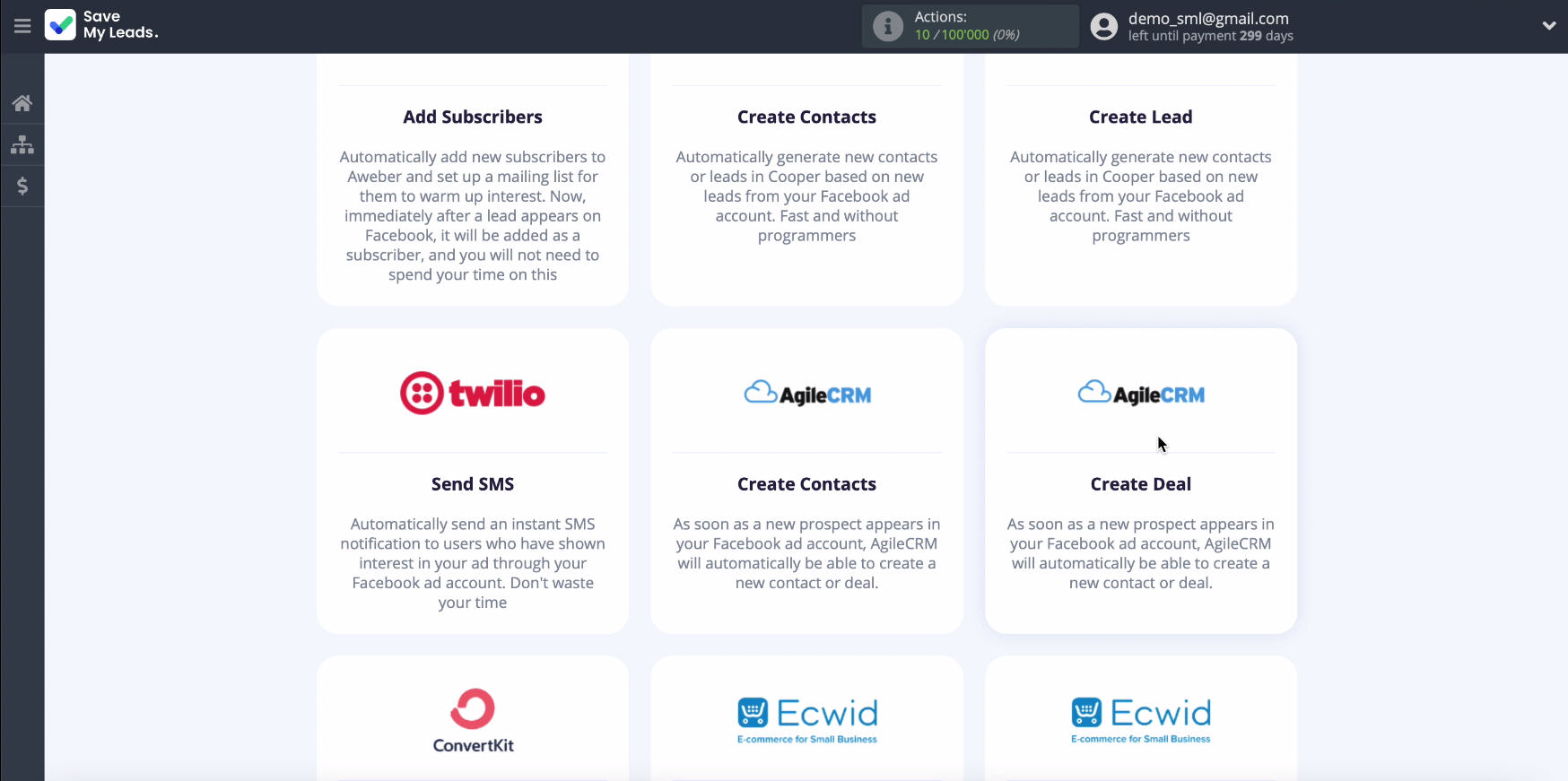 In this manual, we will tell you how to set up the upload of leads from an advertising Facebook account in the form of deals to a CRM system AgileCRM using the online connector SaveMyLeads.