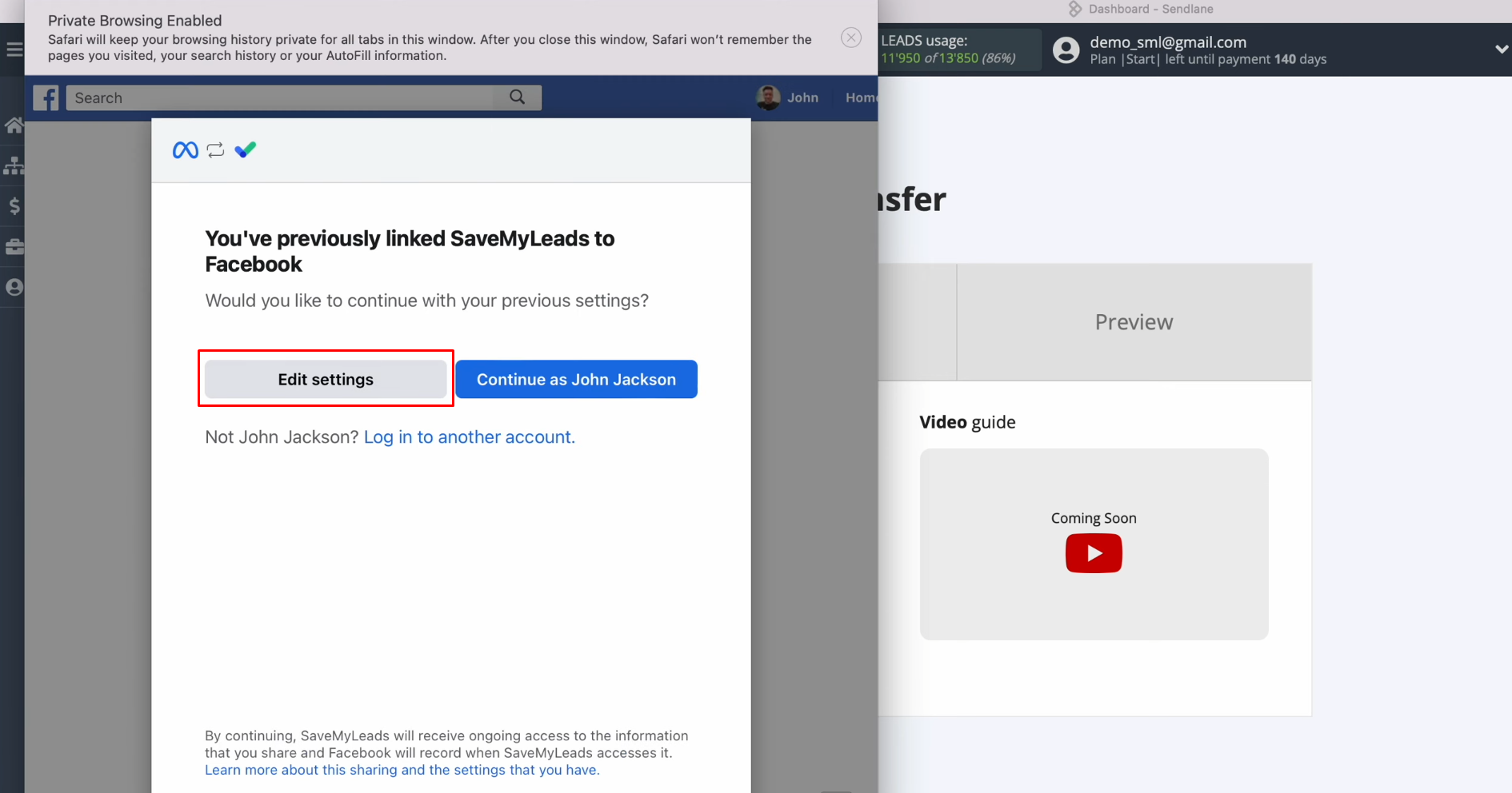 The schema Sendlane Facebook integration is as follows: “data source – online connector – data receiver”. The SaveMyLeads service continuously monitors your Facebook ad account. As soon as a new lead submits a form with their contact details, they will be transferred to your mailing list on the Sendlane platform. To set up and launch automated transfer of potential customer data, you will need to do a few simple steps. Let's not delay and start right now.