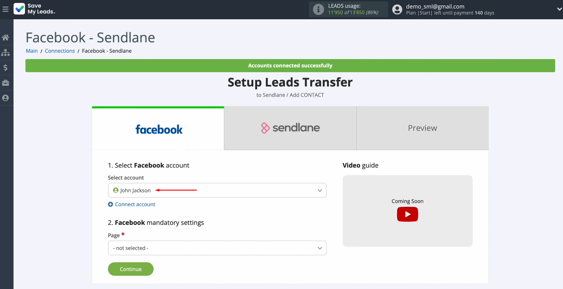 In order for each new lead from Facebook to transfer to the Sendlane service, enable auto-update. To achieve this, click "Finish setup".