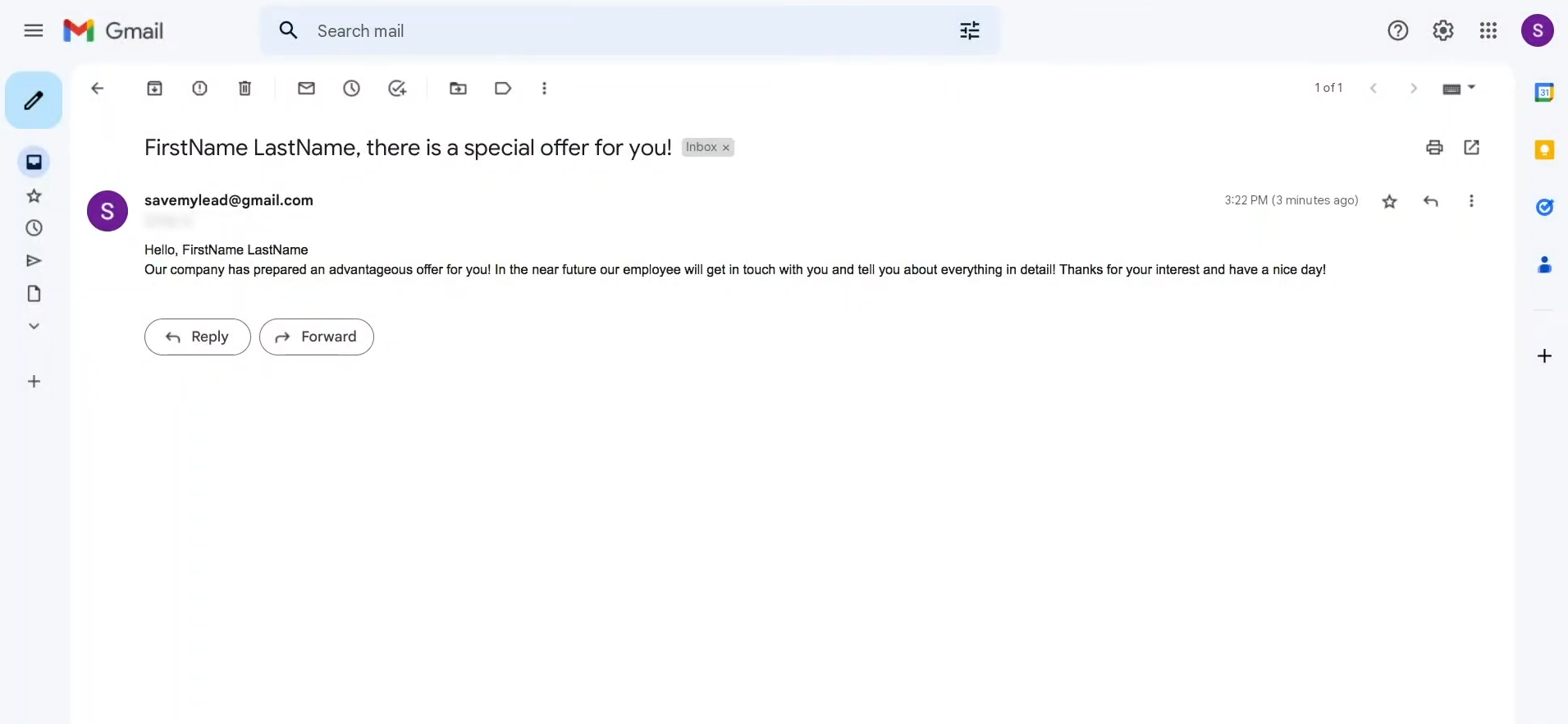 The results of Google Lead Form and Gmail integration will be apparent immediately after completing the setup via the SaveMyLeads connector. When users submit applications through the lead form, their contact information will be automatically forwarded to your email. If you used to manually transfer their names and email addresses between services, you can now abandon this outdated method. You can also set up an integration for automated email sending to customers. Automating data transfer not only simplifies your workflow, but also impresses leads with prompt feedback and a positive interaction experience, increasing the likelihood that they will become repeat customers. In turn, this will contribute to the growth and success of your business overall.