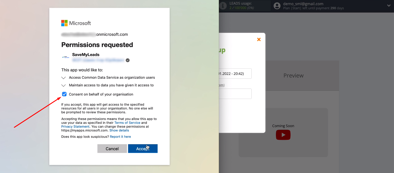 Provide the necessary access to the SaveMyLeads service to work with Microsoft Dynamics 365 account.
