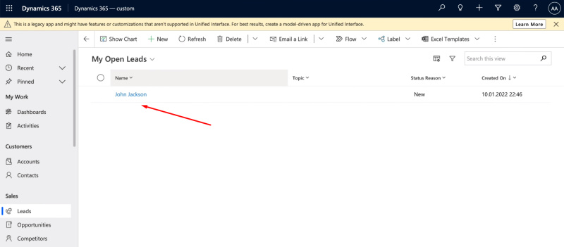 Go to the Microsoft Dynamics 365 personal account and check for a new lead.