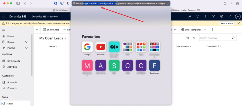 Go to your Microsoft Dynamics 365 personal account and copy the domain in the address bar (without additional characters).
