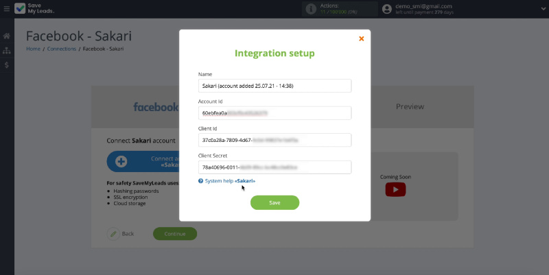To proceed with the configuration, you need to connect your Sakari account to the SaveMyLeads service.