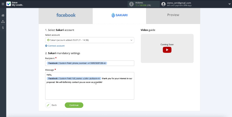 Thanks to SaveMyLeads , you won't waste more than 5 minutes of your time to customize your integration. Thanks to the ease of use of the connector, you can easily link the work of Facebook and Sakari, for this you do not need programming knowledge or the help of IT specialists.