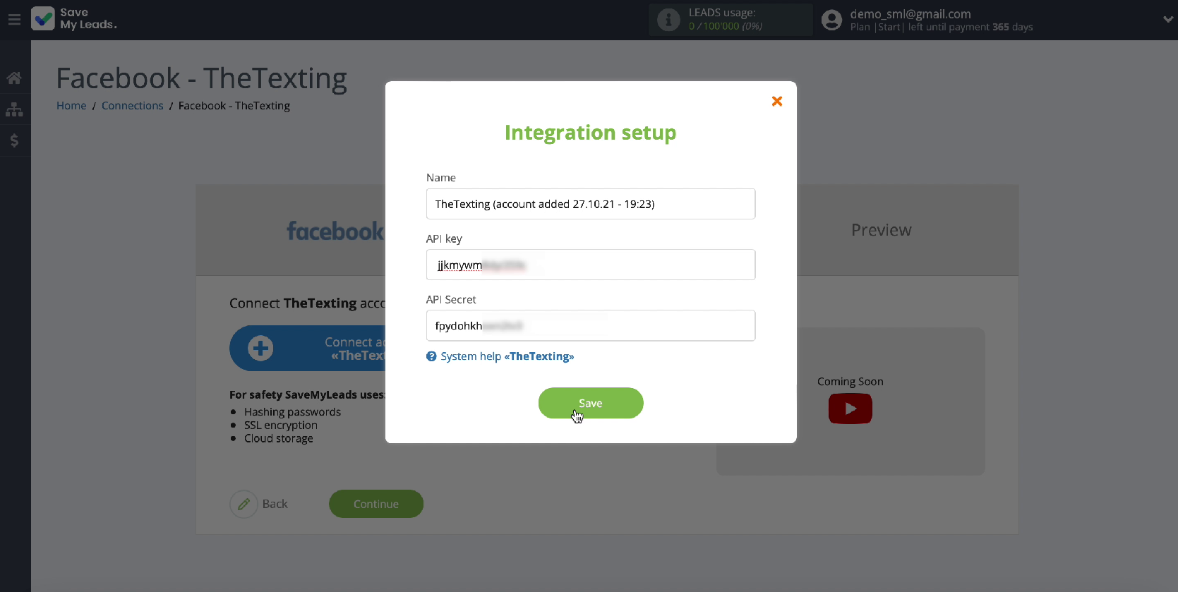 Connect your The Texting account to SaveMyLeads