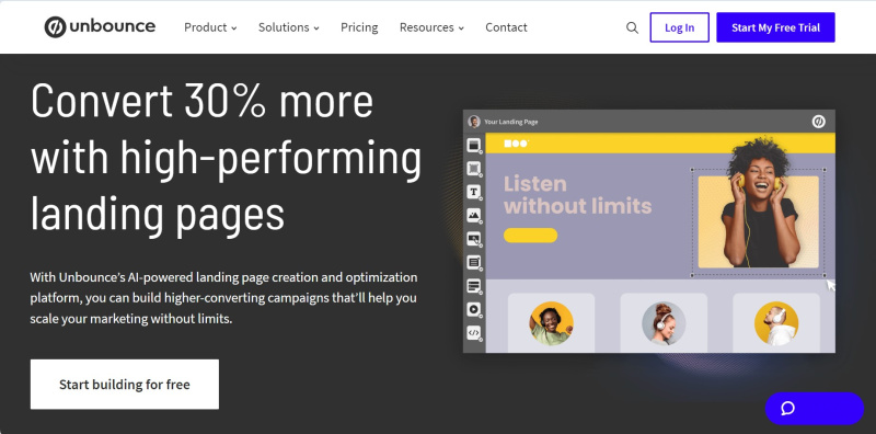 Unbounce is another one of the best A/B testing tool with functionality for Conversion Rate Optimization (CRO) and a landing page builder.