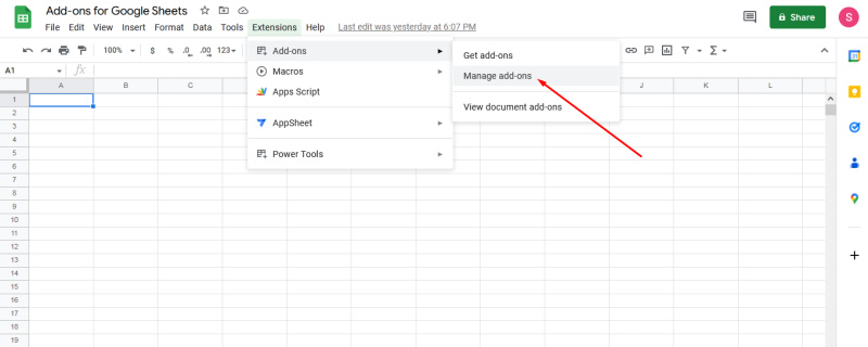 Step 2: Open the menu Extensions>Add-ons>Get add-ons.