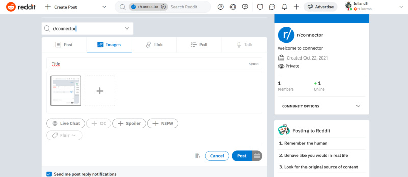 Next, you need to select the community where the picture/video will be sent. If desired, you can add tags Spoiler and mark NSFW. Click on the “Post” button to post. It is worth considering that not all subreddits allow their members to post pictures or other media content in them.