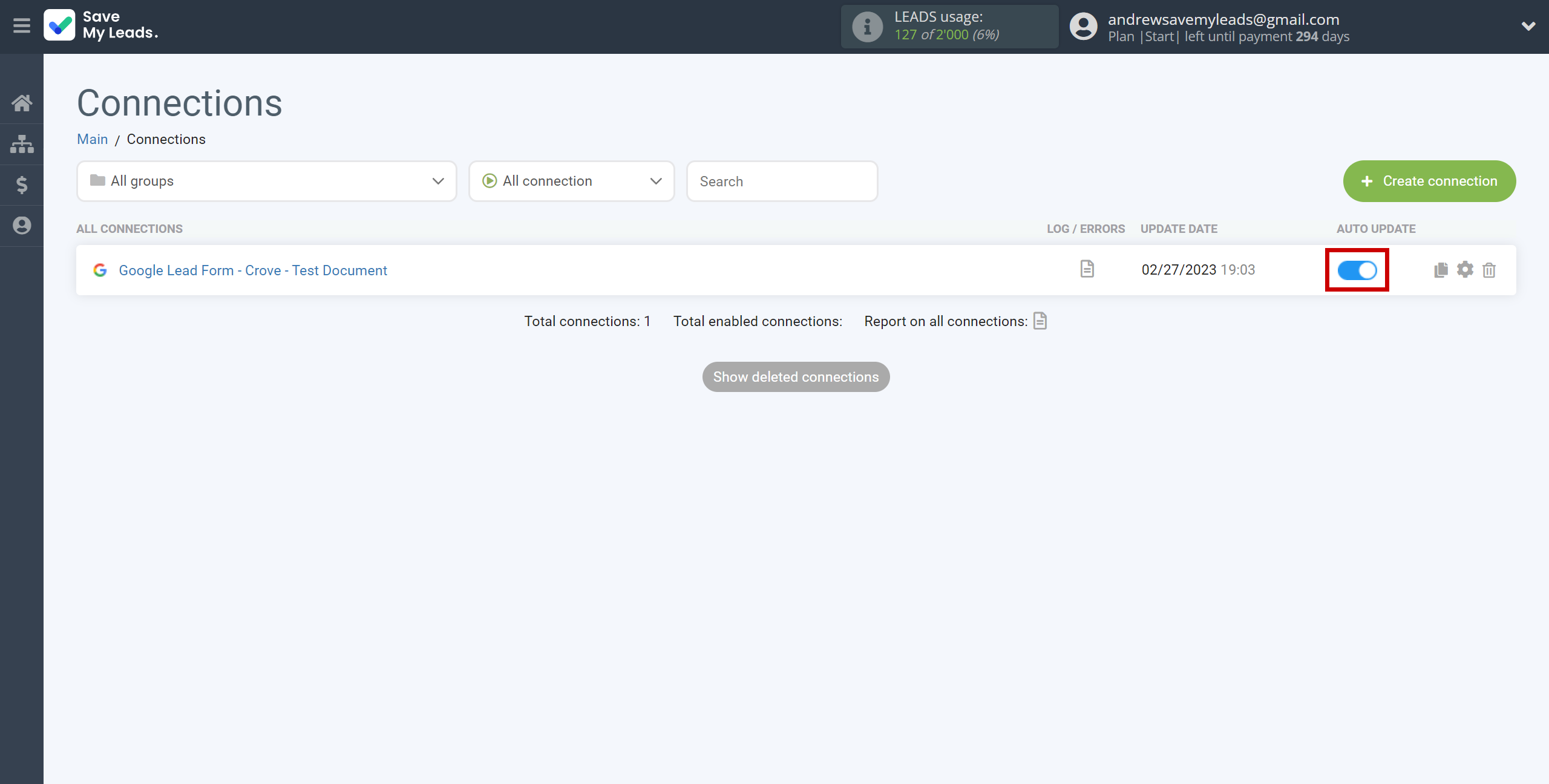 The next step is to select Google Lead Form account from which SaveMyLeads get leads.