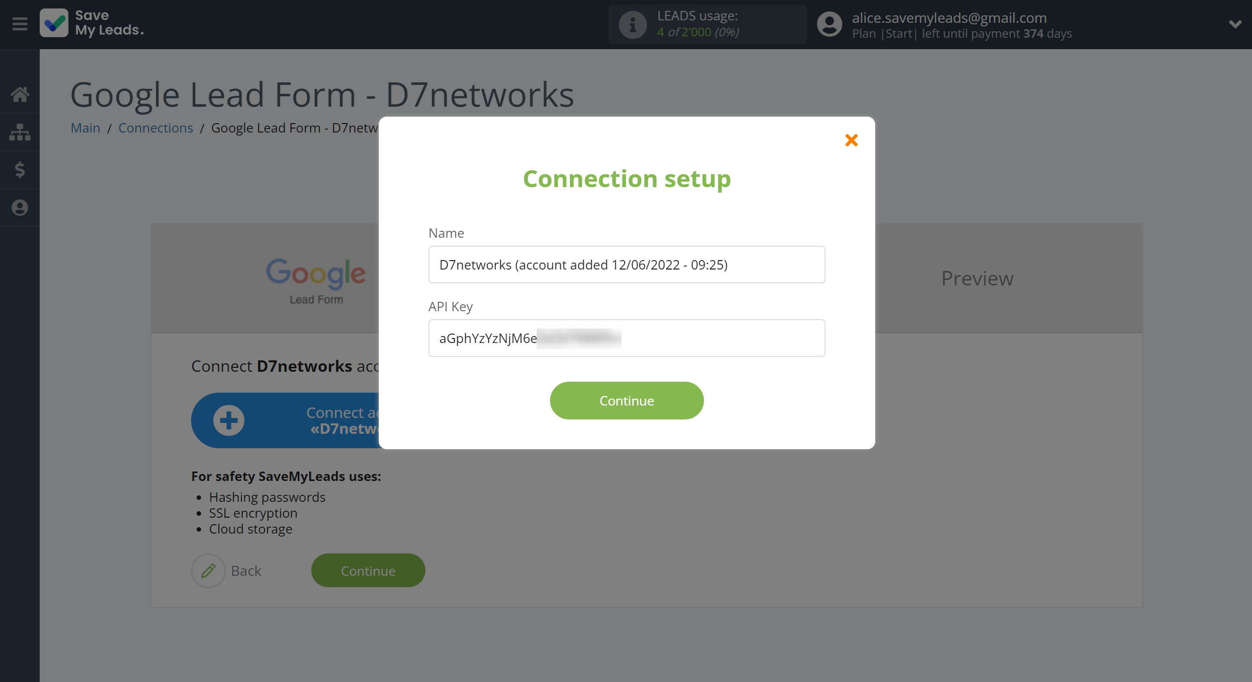 Next, you need to specify the system to which the data from the Google Lead Form will be transferred. In this case, you must specify D7 Networks.