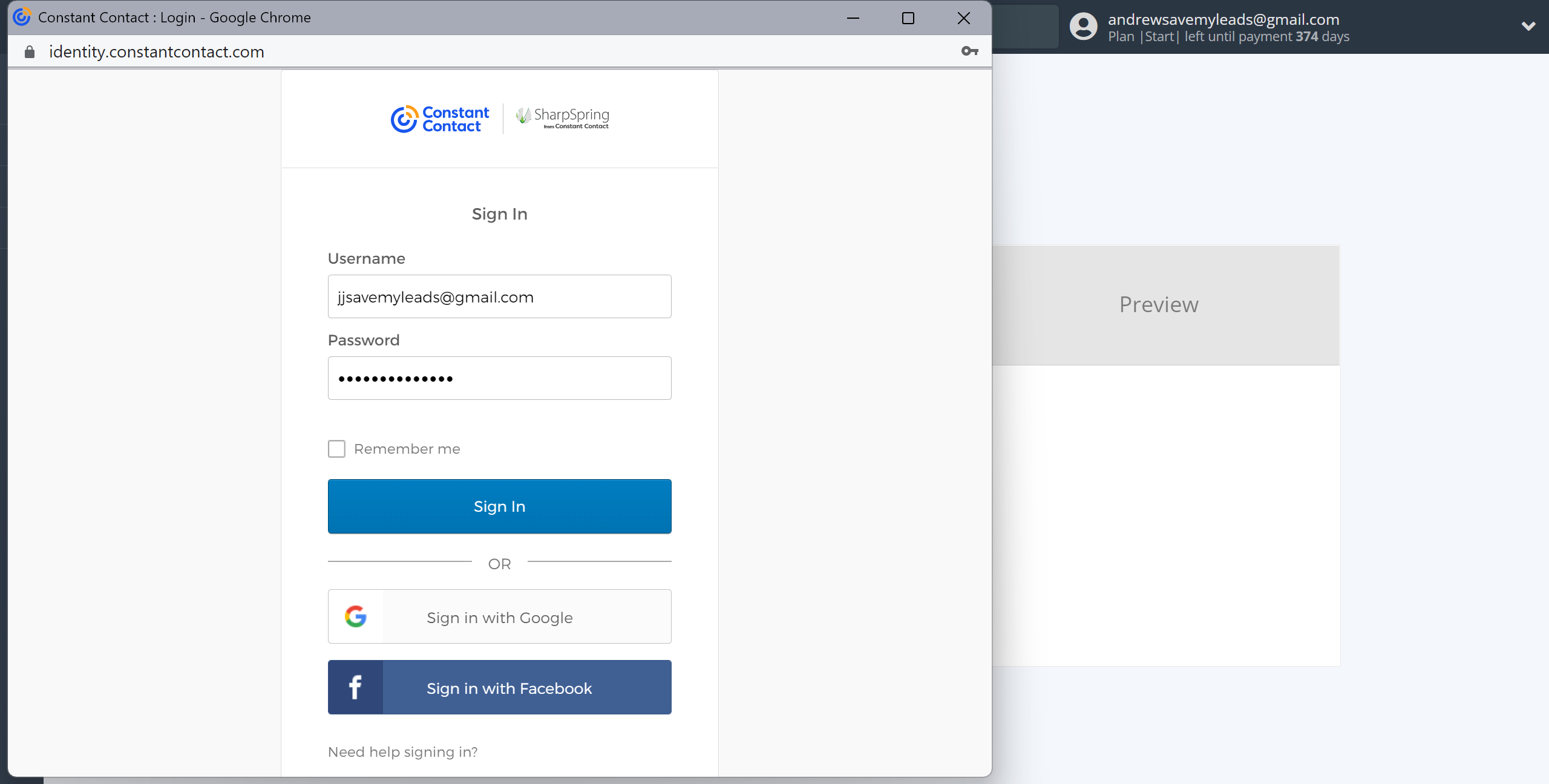Enter your Constant Contact account Username and Password and click "Sing in".